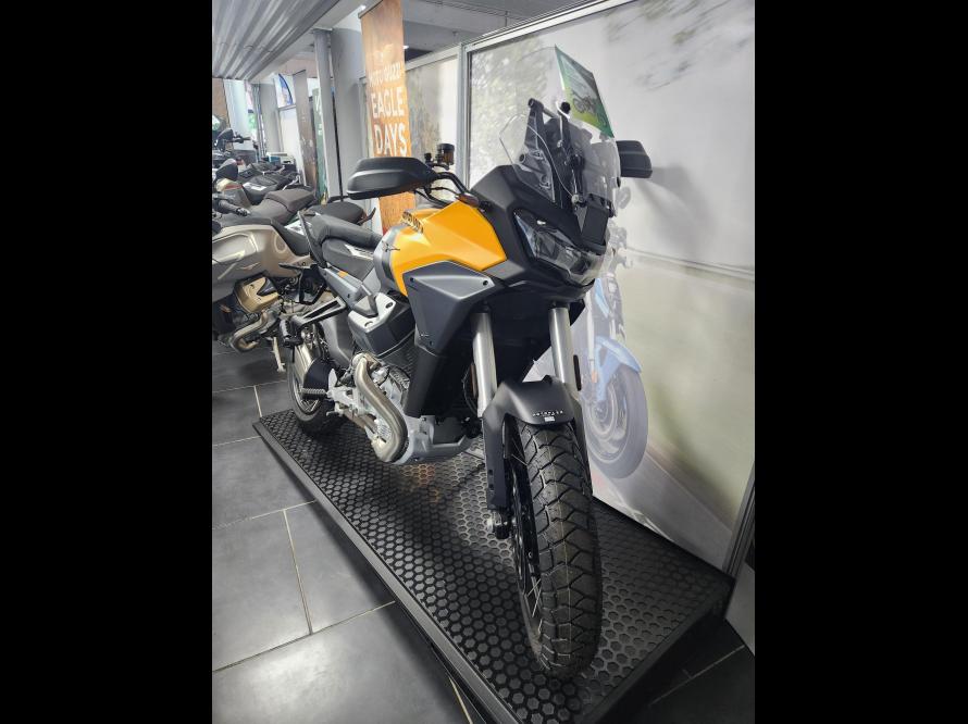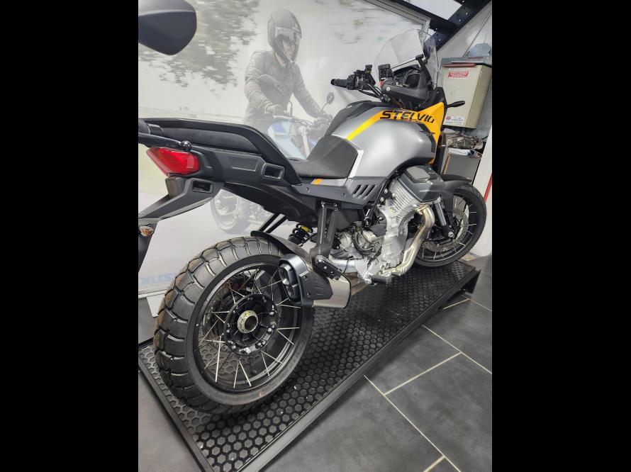 La Stelvio est conçu pour profiter du voyage, sans se fixer de limites grâce à un réservoir de 21 litres avec une autonomie de plus de 400km. Un élément clé est le cadre tubulaire en acier qui améliore la maniabilité de la moto, un compromis optimal entre agilité et stabilité.